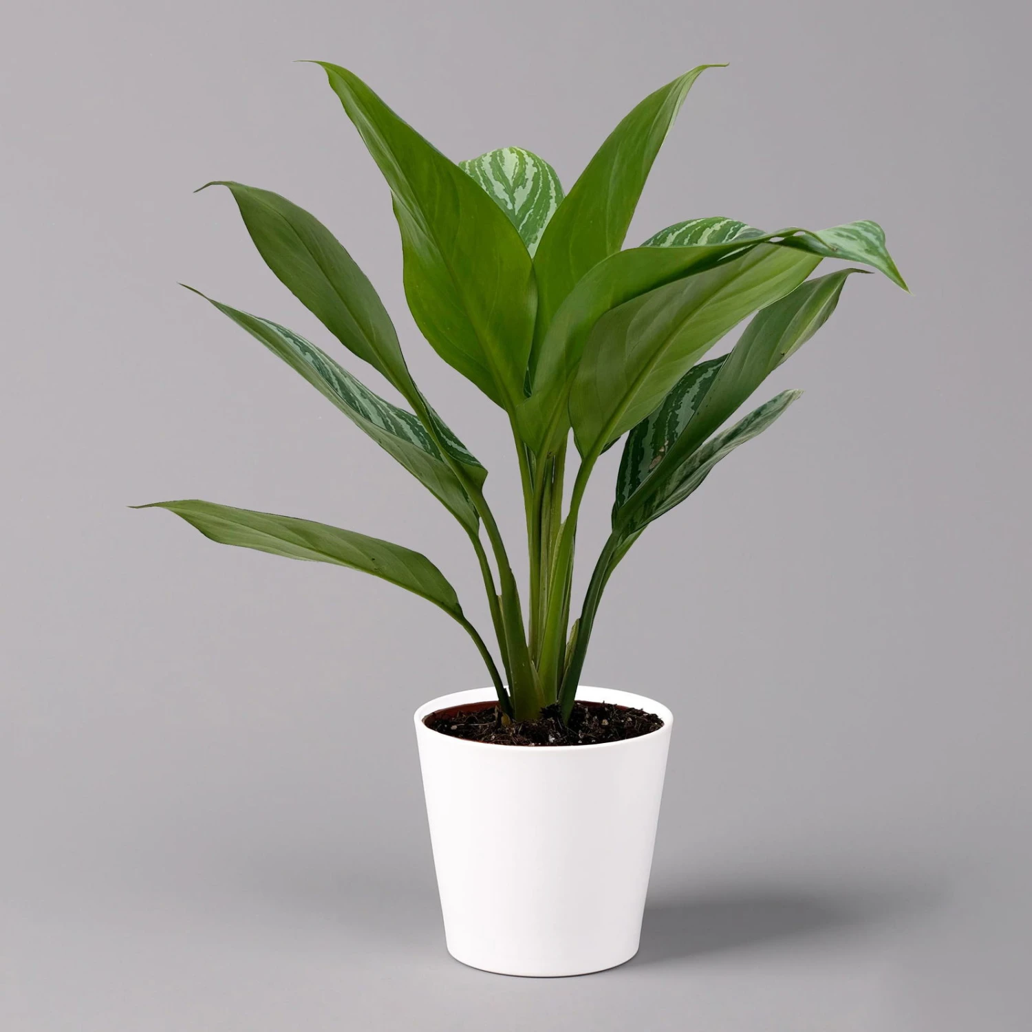 Aglaonema ‚Stripes‘, Topf-Ø 12 Cm Mit Übertopf Dallas Weiß