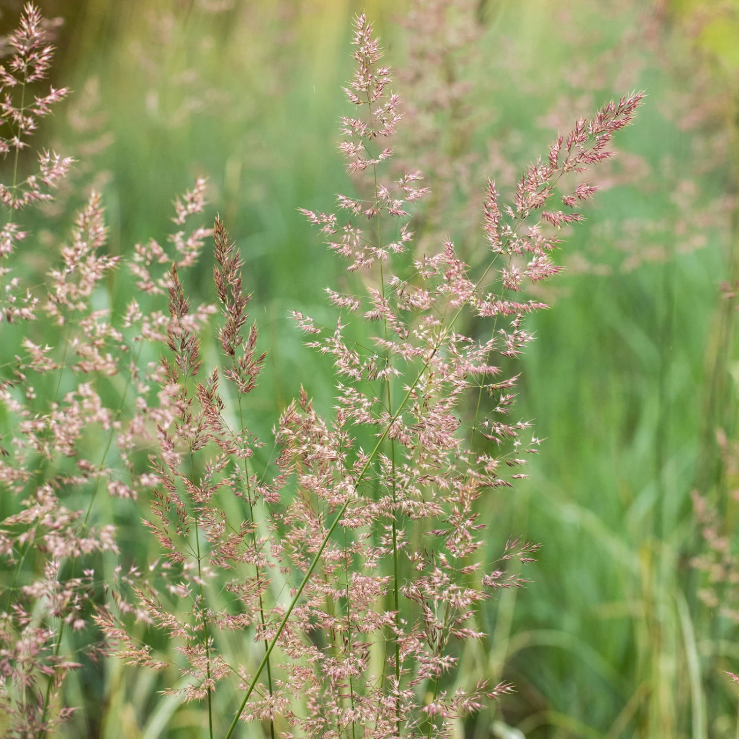 Calamagrostis ‚Overdam‘ hat im Austrieb silbrig-rosa Blütenrispen, die sich weitgefächert öffnen und im Laufe des Sommers dann zu schmalen Ähren werden, die sich im Hochsommer gelbbraun verfärben. So schmücken die dekorativen Blütenrispen den Garten bis weit in den Winter hinein. Schneiden Sie das Gras erst im zeitigen Frühjahr vor dem Neuaustrieb zurück.