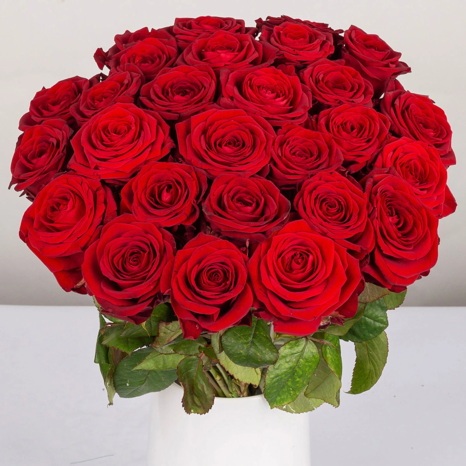 Unsere exklusiven Edelrosen ‚Red Naomi‘ in samtigem Rot mit herrlichem Duft stehen sinnbildlich für die ganz große, immerwährende Liebe – ein Blumengruß, der Herzen zum Schmelzen bringt!