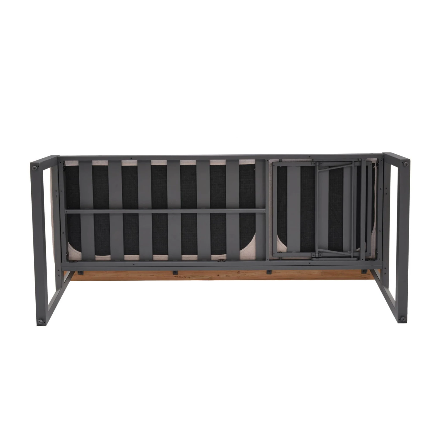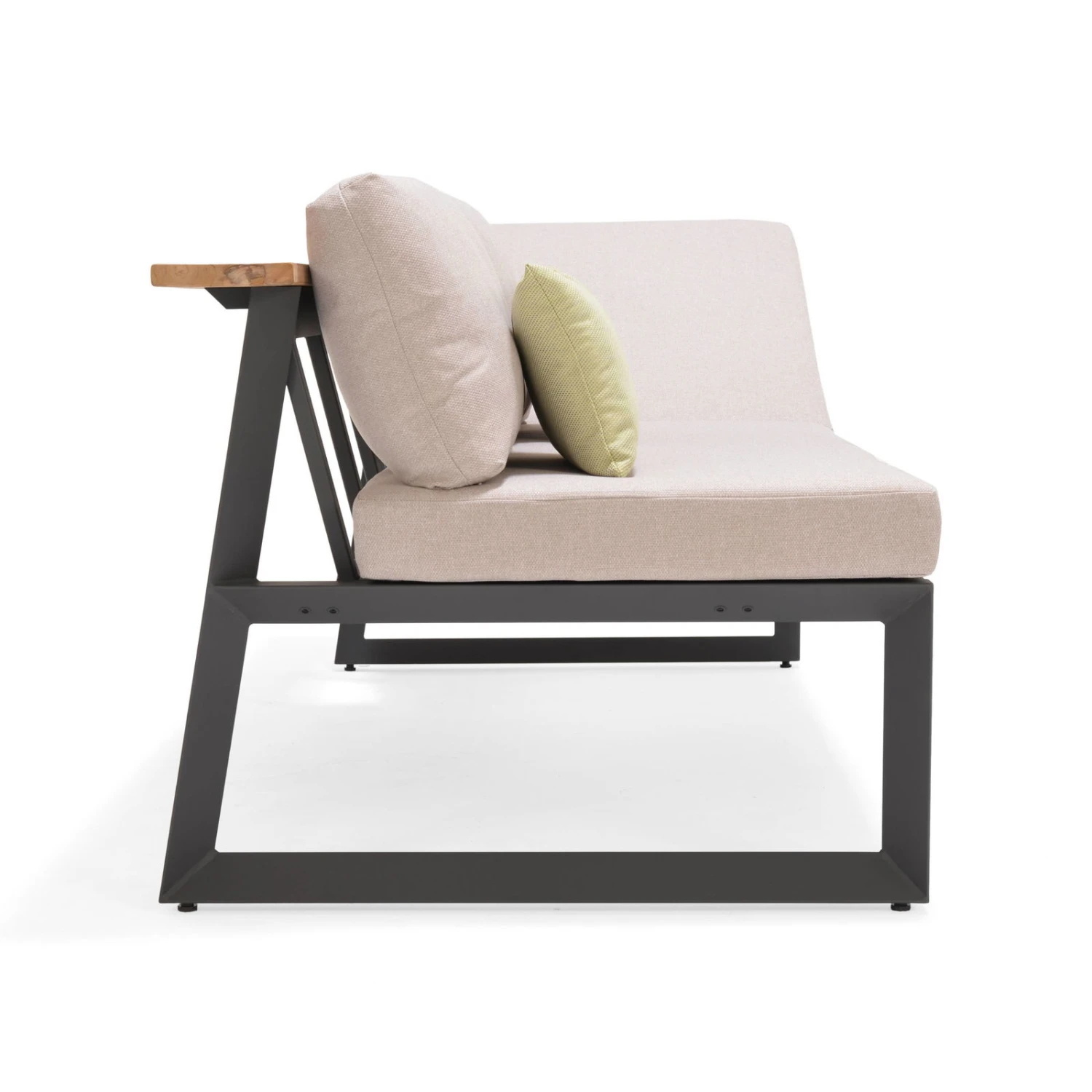 Genießen Sie einen Blick ins Grüne und profitieren Sie dank der Dining-Bank ‚Jimmy‘ von ausgezeichnetem Sitzkomfort. Der Dreisitzer im angesagten Industrial Style überzeugt mit einem höhenverstellbaren Rückenteil und ist in der Mitte bis zu einem Gewicht von 160 Kilogramm belastbar. Die witterungsbeständigen Auflagen mit Bezug aus Olefin sind im Lieferumfang inklusive.