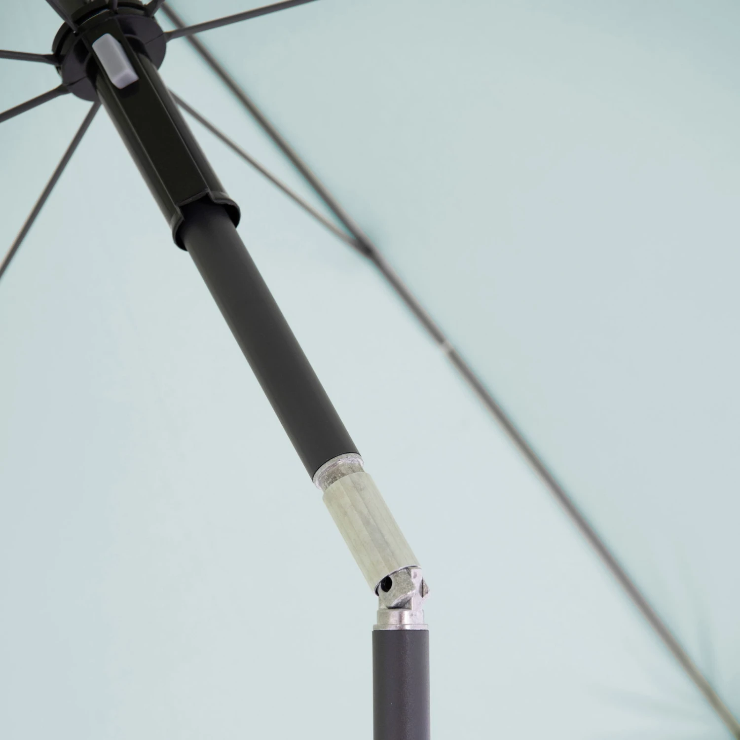 Mit dem hellblauen Beach-Sonnenschirm ‚Como‘ von Doppler kreieren Sie eine schattige Oase auf Ihrer Terrasse, am Pool oder auf dem Balkon. Dieser Strandschirm ist einfach zu handhaben und überzeugt mit hohem Lichtschutzfaktor 50+. Damit Ihr Mittelstockschirm stabil bleibt, benötigen Sie einen mindestens 25 Kilogramm schweren Sockel oder einen Rasendorn.