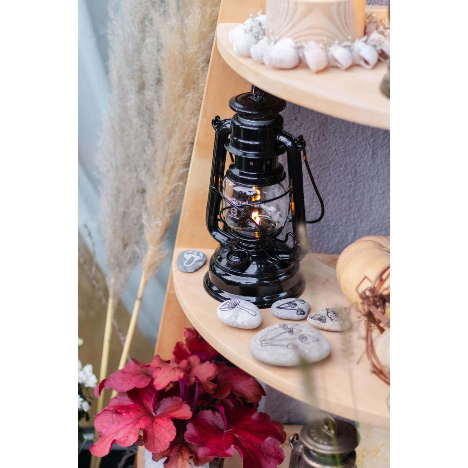 Mit der Sturmlaterne ‚Baby Special 276‘ ist für Beleuchtung im Außenbereich bestens gesorgt. Die Sturmlaterne von Feuerhand in leuchtendem tiefschwarz überzeugt mit einem ruhigen Flammenbild und einer langen Brenndauer. Diese stromlose Lichtquelle brennt trotz stürmischem Wind und heftigen Niederschlägen einfach weiter.