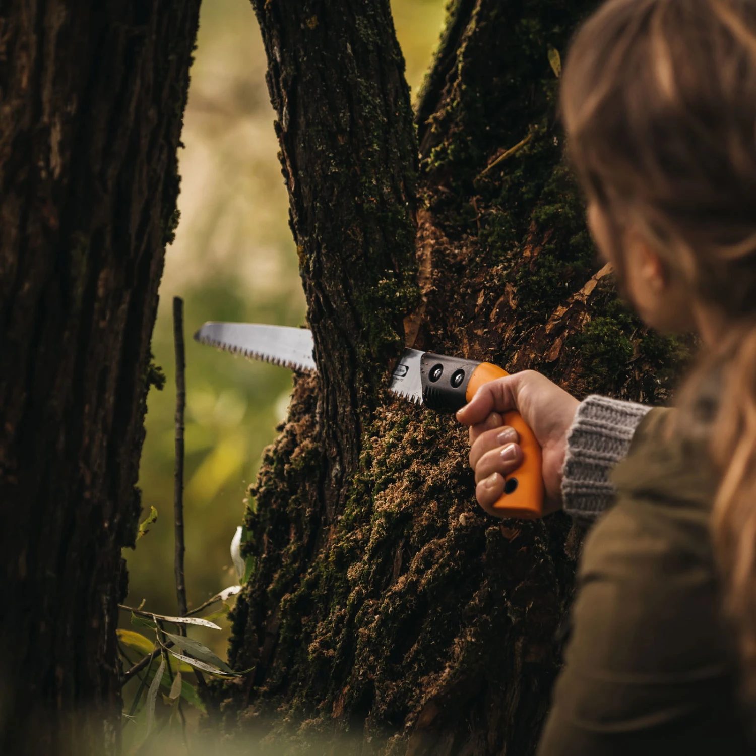 Die langlebige Handsäge von Fiskars eignet sich ideal zum Schneiden von insbesondere frischem Holz wie beispielsweise Ästen, Hecken und Büschen. Der rutschfeste Griff weist neben dem Fingerschutz eine integrierte Schlaufe auf, mit dem die Säge an einem Gürtel befestigt werden kann. Dank spezieller, grober Zahnung werden saubere Schnittergebnisse beim Schneiden in Zugrichtung erreicht.
