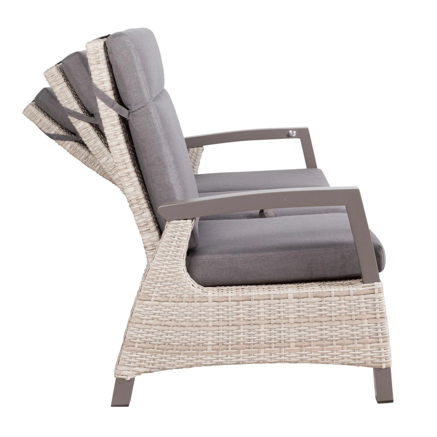 Für mehr Bequemlichkeit sorgt die dazu harmonisch passende Auflage aus Polyester und die stufenlos verstellbare Rückenlehne. Der moderne Sessel ist für den dauerhaften Einsatz im Außenbereich konzipiert und somit wetterfest und pflegeleicht.