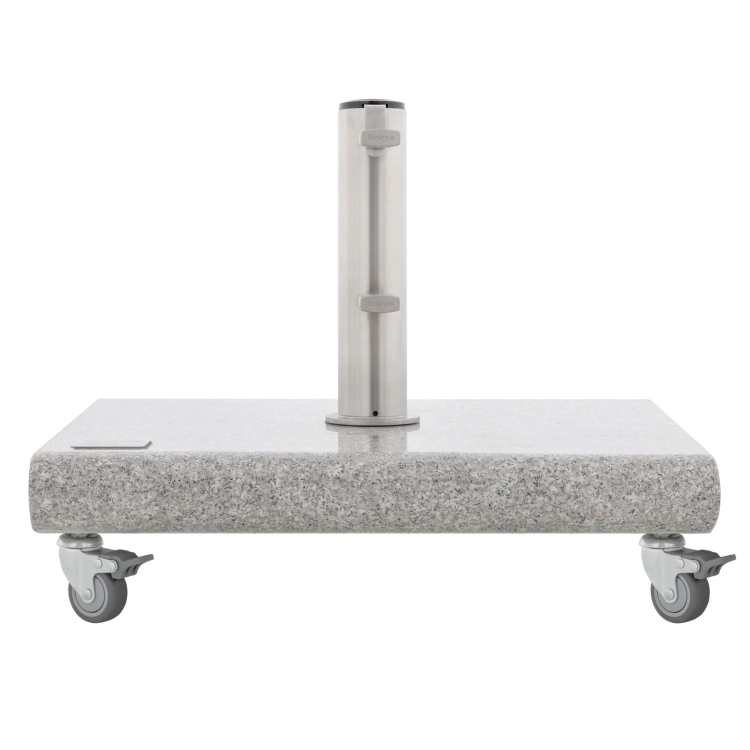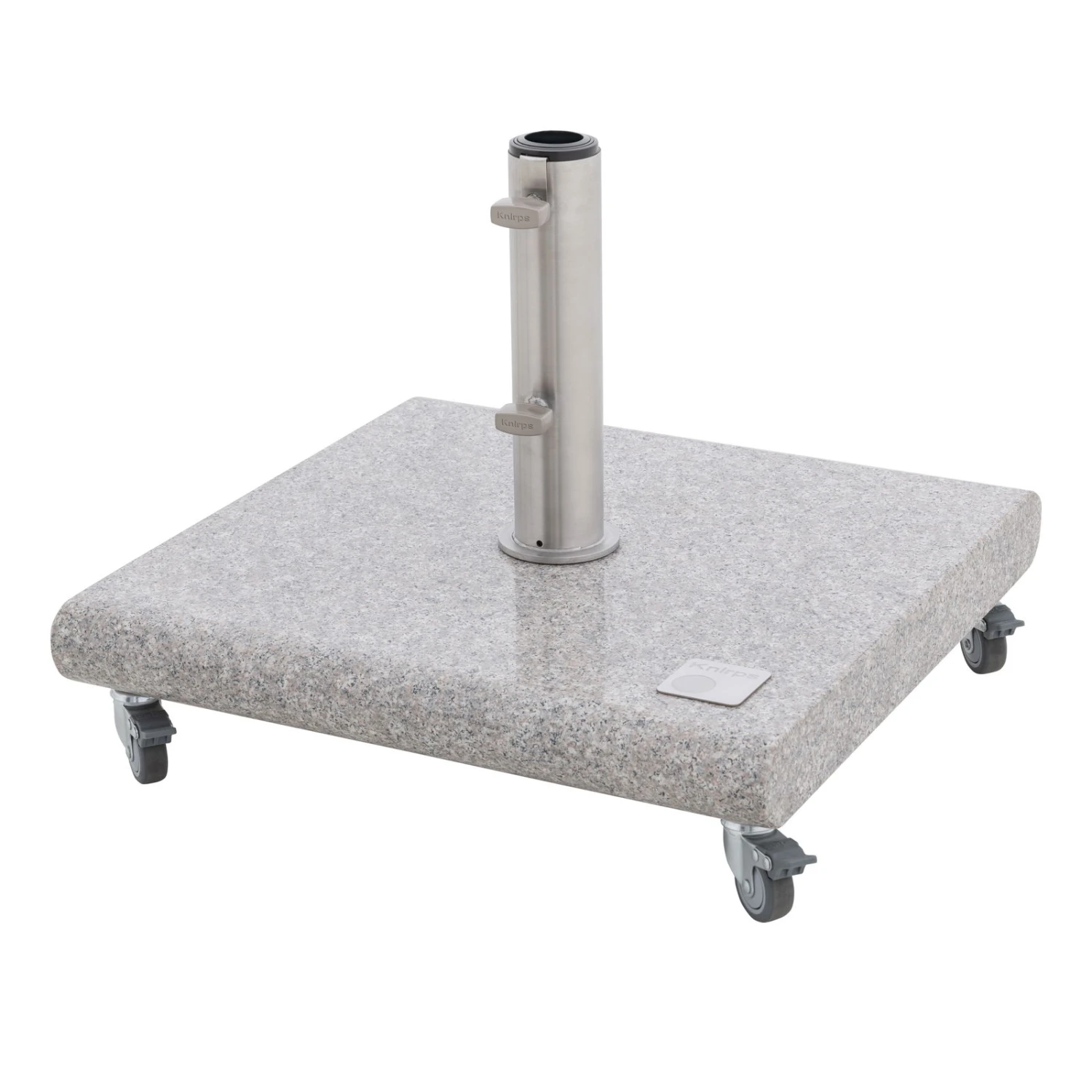 Dieser rund 50 Kilogramm schwere Granitsockel verleiht Ihrem Sonnenschirm von Knirps einen festen Stand. Besonders praktisch: In den Sonnenschirmsockel sind Rollen integriert, sodass Ihr Schattenspender mobil bleibt. Denken Sie daran, bei Starkwind den Sonnenschirm immer zu schließen, um Unfälle zu vermeiden.