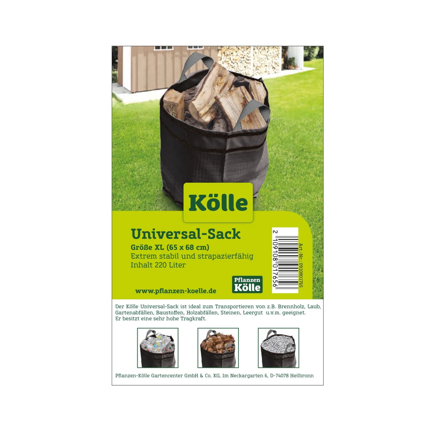 Der Laubsack von Kölle ist Ihr praktischer und robuster Allrounder zum Aufbewahren und Transportieren. Der nahezu unverwüstliche Laubsack in verschiedenen Größen macht sich im Outdoorbereich auf eine vielfache Art nützlich. So können Sie in dem strapazierfähigen Sack Brennholz für Ihre Feuerstelle oder Ihren Kamin aufbewahren. Oder füllen Sie den Laubsack mit Laub aus dem Fangbehälter Ihres Laubbläsers sowie mit Grünschnitt, um die Gartenabfälle zur nächstgelegenen Abgabestelle zu bringen. In dem Laubsack lassen sich auf Wunsch Werkzeug, Baumaterialien oder zum Beispiel Steine für Ihr Kieselbeet zum Einsatzort transportieren. Gegenüber den Wettereinflüssen und Temperaturunterschieden ist das Material weitgehend unempfindlich, sodass Sie den Kölle Laubsack sogar ungeschützt draußen platzieren dürfen.