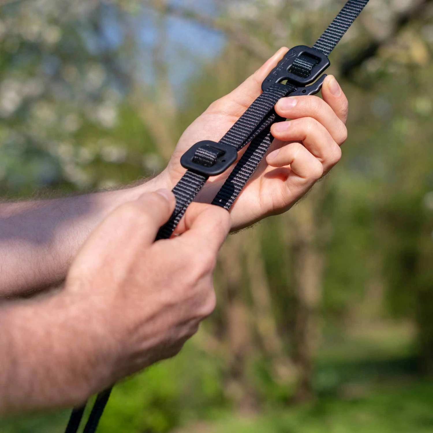 Die Singe-Reisehängematte Colibri 3.0 ist perfekt geeignet zur Entspannung für Unterwegs. An jedem Ort der Wel lässt sie sich dank den CrocodileHook Aluminium-Haken sicher aufhängen. Dank des extra breiten Gurts können Sie diese Reisehängematte an jeden Baum anbringen ohne diesen zu beschädigen. Die diagonale Liegeweise ist optimal für eine gesunde Liegeposition geeignet. Der hautverträgliche Stoff ist dabei so konzipiert, dass vor allem an den sonst so empfindlichen Kanten eine gute Reißfestigkeit besteht. Die Verbindung aus modernen Haken und einem leistungsstarken Gurt lässt zudem eine individuelle Einstellung der Höhe und Länge zu, sodass Sie sehr flexibel in der Anwendung bleiben. Zum Reinigen können Sie die Singe-Reisehängematte Colibri 3.0 per Hand waschen oder als Schonwäsche in die Maschine geben.