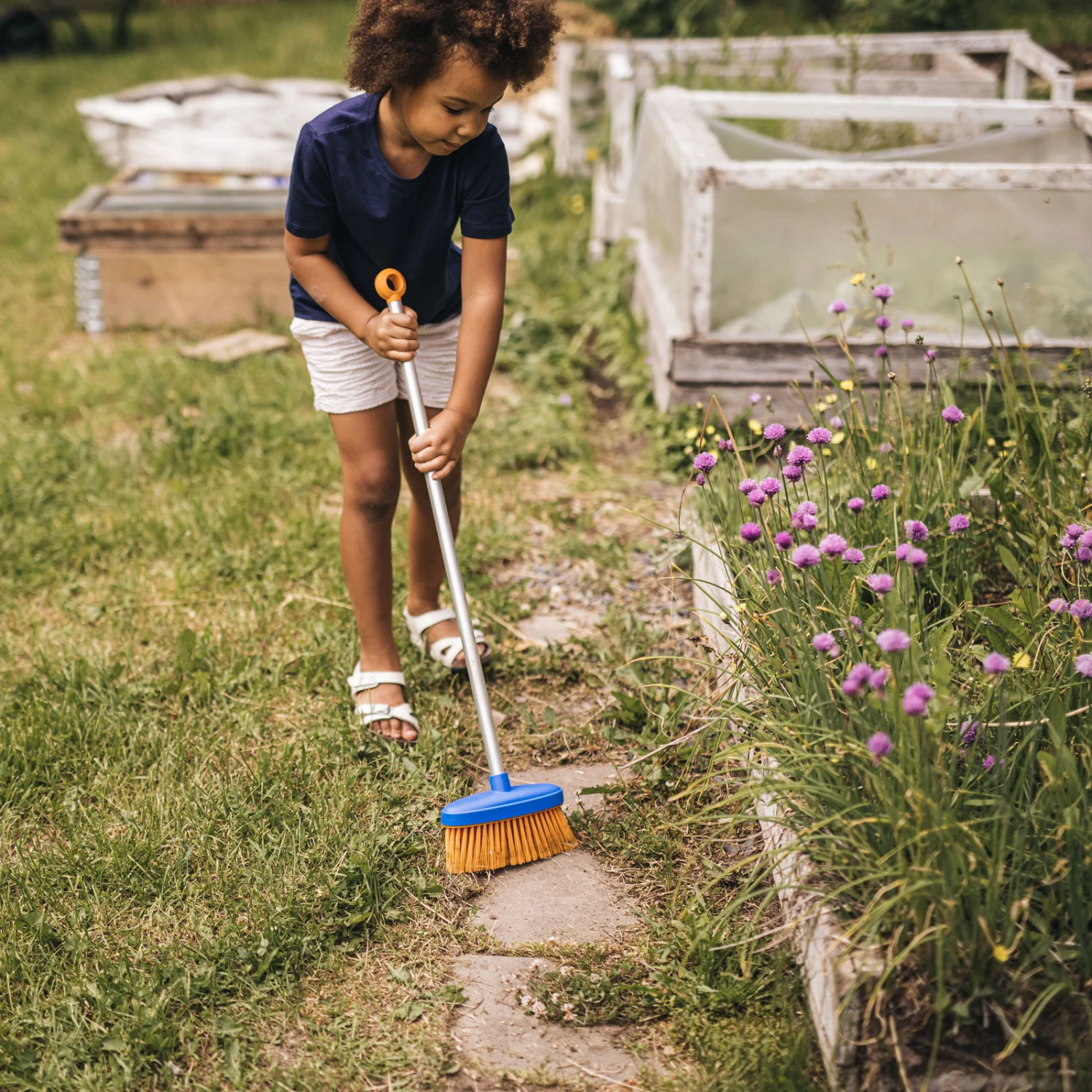 Gemeinsam mit den Eltern Laub harken und saubere Haufen bilden, damit sich Igel und andere Kleintiere über ein gemütliches Winterquartier freuen – mit dem Laubbesen MyFirst von Fiskars macht die Gartenpflege Spaß. Der Laubbesen ist kindgerecht gestaltet, leicht und dabei farbenfroh. Für einen sicheren Halt sorgt der praktische Griff in Orange.