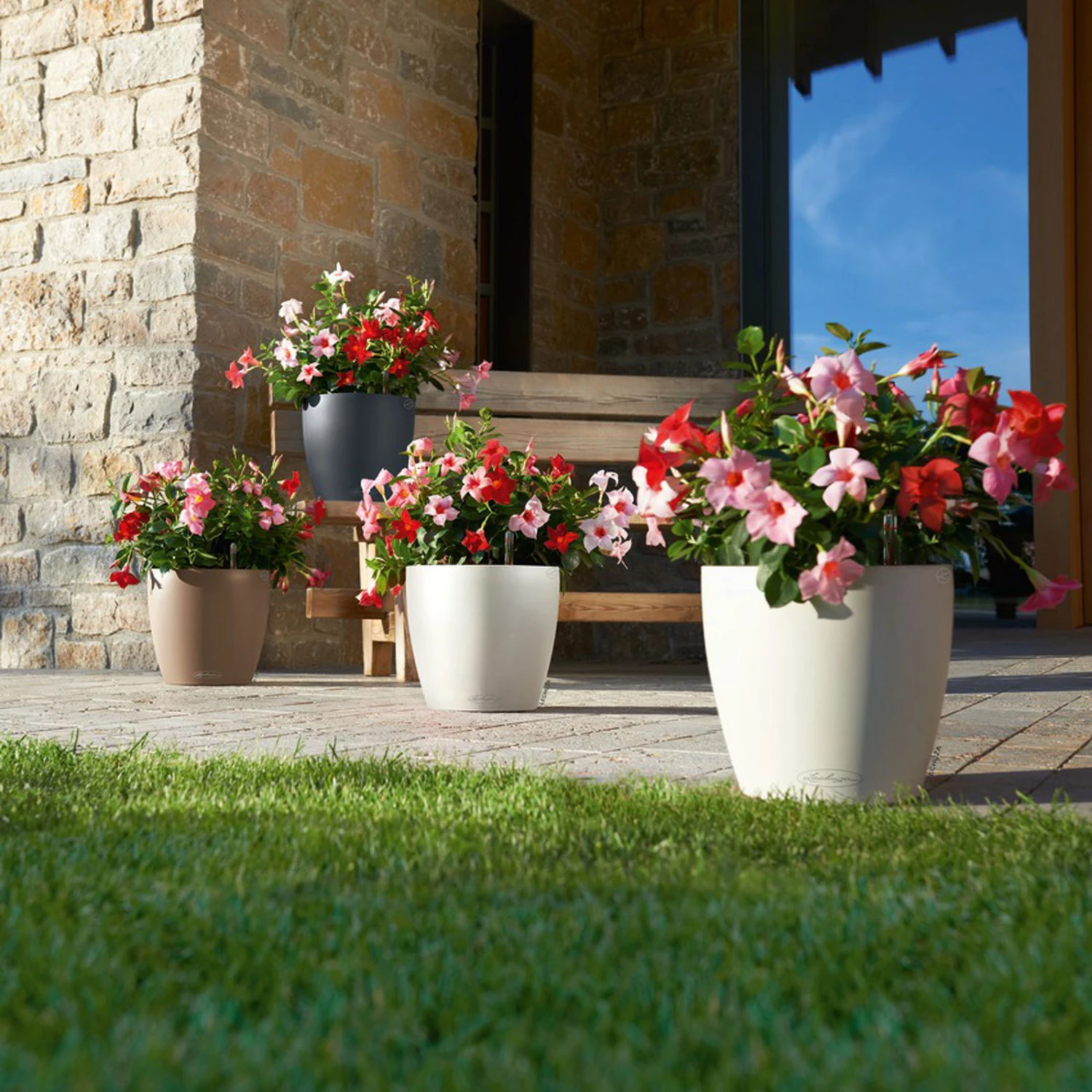 Dieses Pflanzgefäß überzeugt durch ein hohes Fassungsvermögen und stilvolles Design. Der Blumentopf ‚Classico Color 60‘ von Lechuza präsentiert sich in neutralem Grau und lässt sich daher in jeden Wohnstil problemlos einbinden. Dank des strapazierfähigen Materials eignet sich das imposante Pflanzgefäß gleichermaßen hervorragend für die Verwendung draußen und für die Innenraumbegrünung.