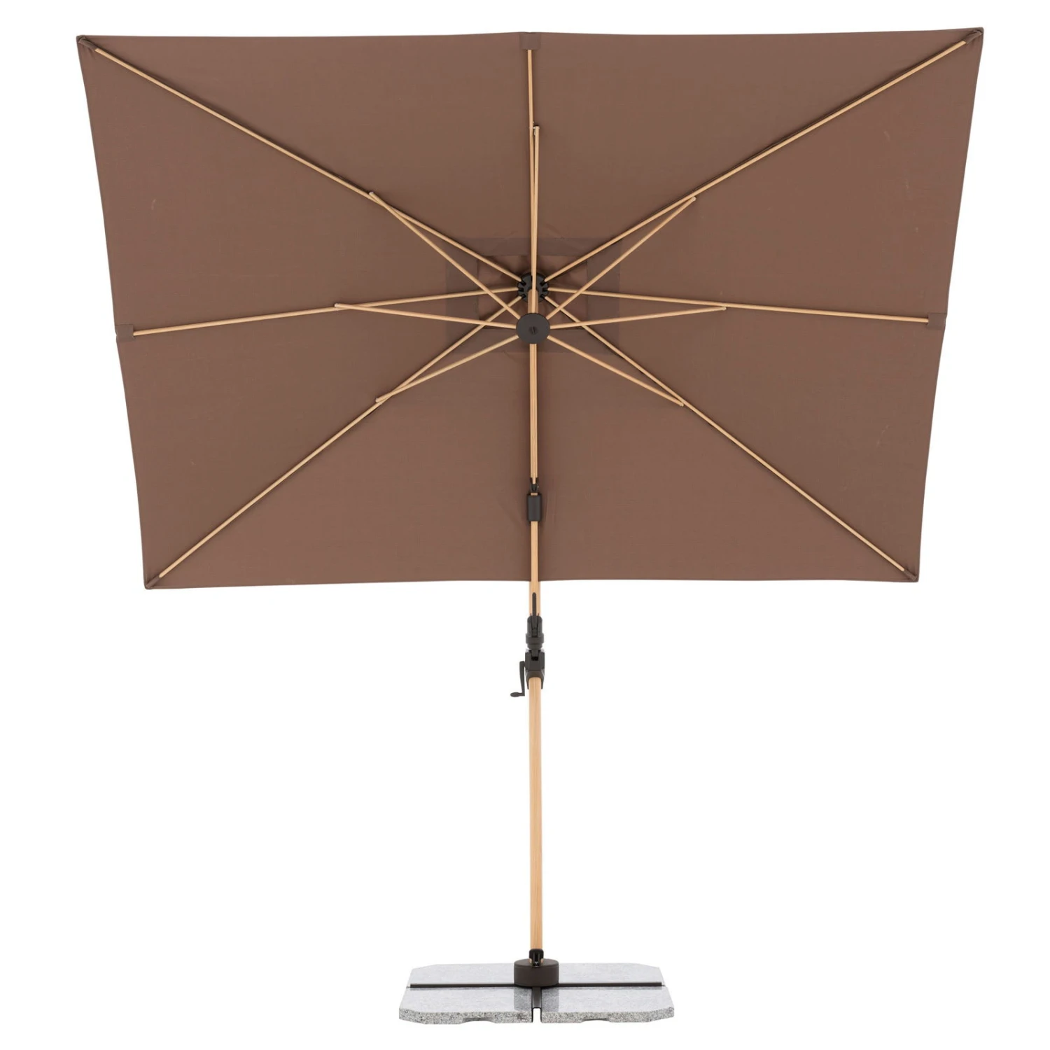 Mit dem Pendelschirm ‚Alu-Wood Ultra AX‘ in ansprechender Holzoptik lassen Sie inmitten der glühenden Hitze eine wohltuende Schattenoase entstehen. Ein paar Handgriffe genügen, um diesen Ampelschirm zu kippen und zu neigen. Für ein Plus an Flexibilität ist das Modell mit einem Fußtaster um 360 Grad drehbar.