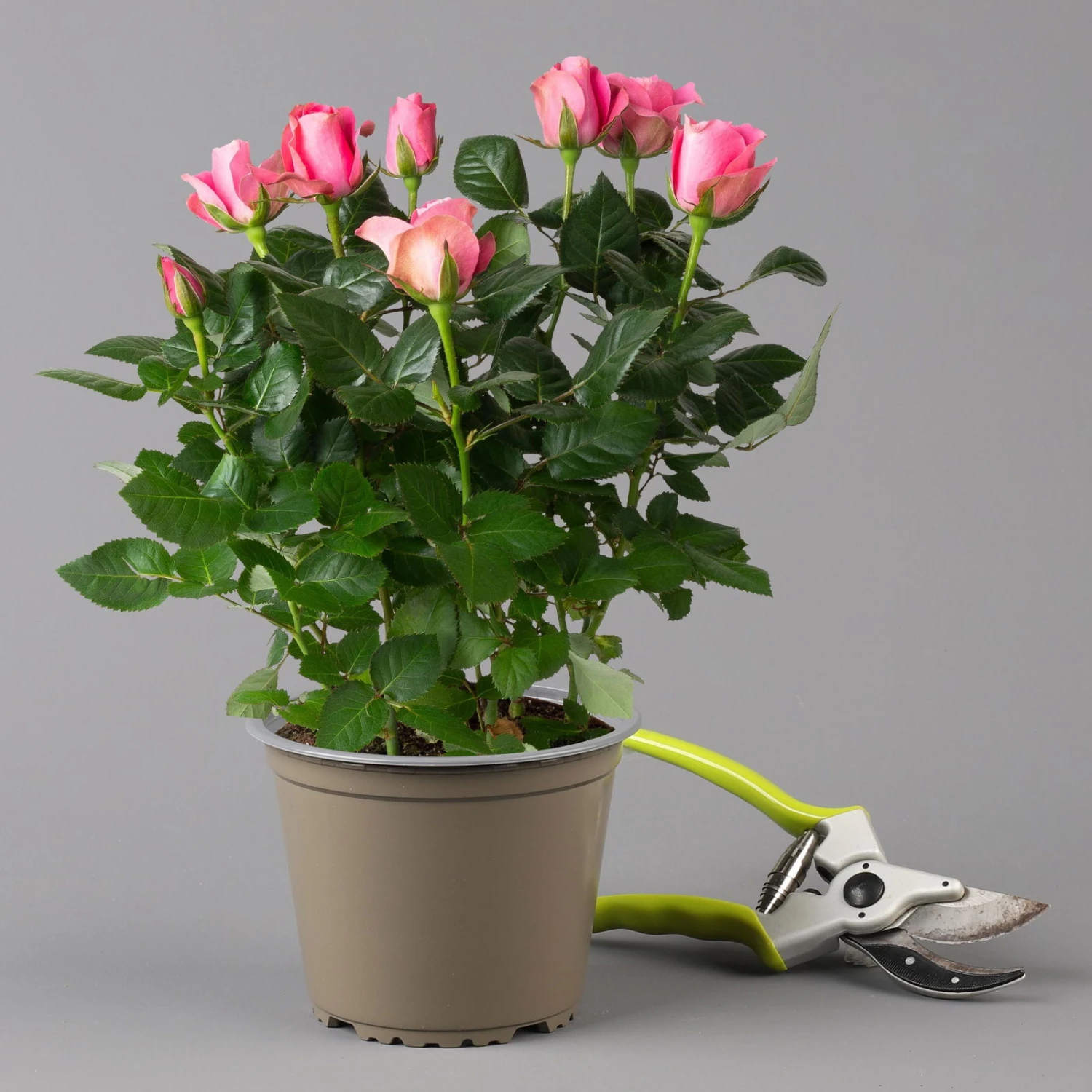 Wichtig ist ein sonniger und warmer Standort, damit sich die Blüten optimal entwicklen können. Das Substrat sollte immer gut feucht gehalten werden, Staunässe sollte jedoch verhindert werden. Außerdem kann die Topfrose von Frühjahr bis Herbst alle 7 bis 14 Tage mit einem Rosen- oder Blühpflanzendünger gedüngt werden, um der Blütenpracht zusätzlich auf die Sprünge zu helfen.