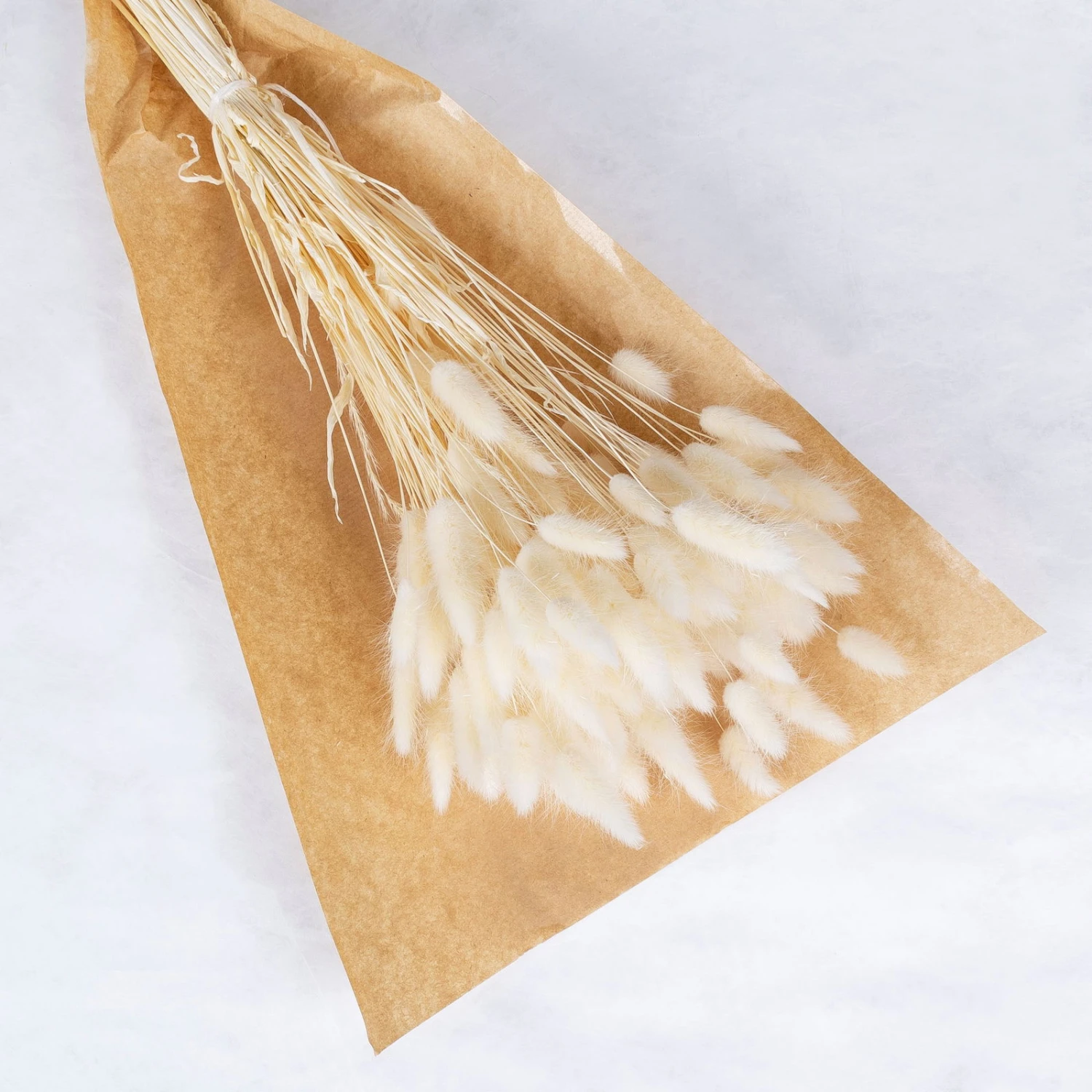 Das Samtgras (Lagurus ovatus) ist eine Grasart, die besonders durch die weichen, samtartigen Blüten überzeugen kann. Durch Bleichen und Trocknen erhält das Ziergras seine wunderschöne cremefarbene Tönung. In einer Vase arrangiert besticht das Samtgras durch seine malerische Ausstrahlung, es macht sich aber auch toll als Begleitakzent zu anderen Trockenblumen.